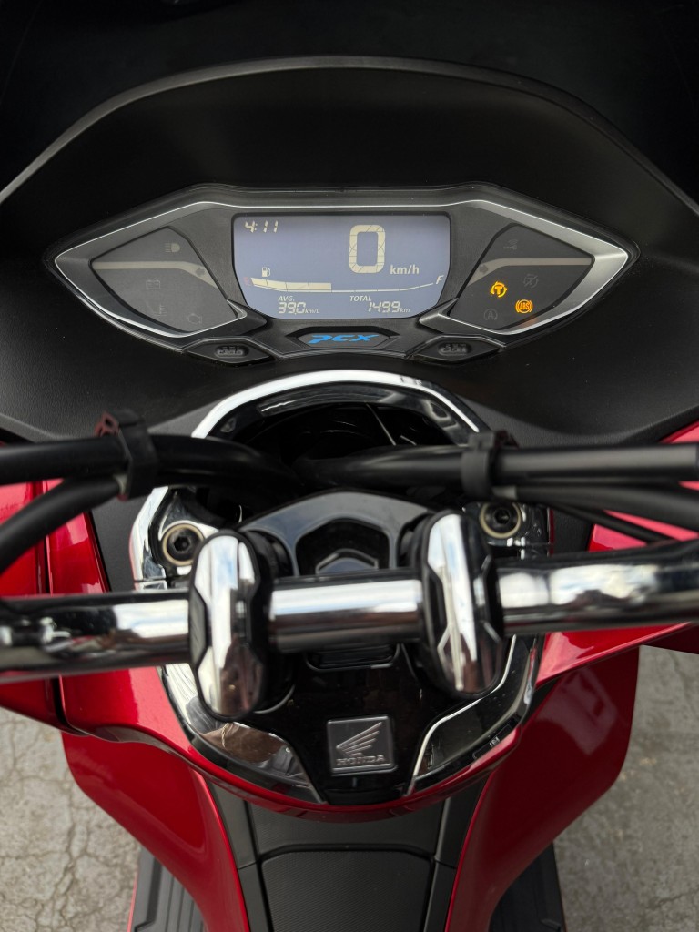 Design Premium: Cor Vermelho Perolizado que destaca as linhas modernas e elegantes da PCX.