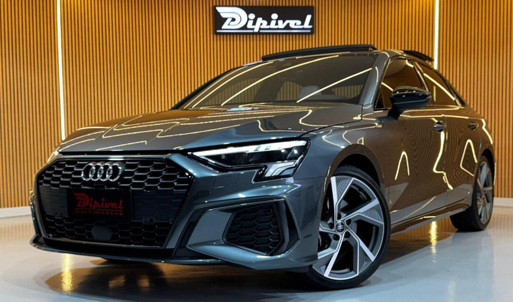 O Audi A3 Perfect Black 2.0 TFSI Sline 2024 destacase pelo visual esportivo e elegante, com acabamentos escurecidos que reforcam sua identidade premium.