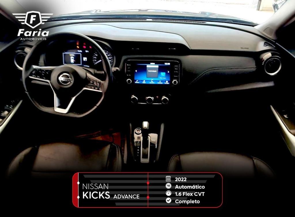 O Nissan Kicks Advance 2022 é elogiado pelo excelente custo-benefício, design renovado com assinatura em LED, e amplo espaço interno (porta-malas de 432L). Destaca-se pelo conforto dos bancos "Gravidade Zero", central multimídia de 8" com conectividade, chave presencial e bons índices de consumo.