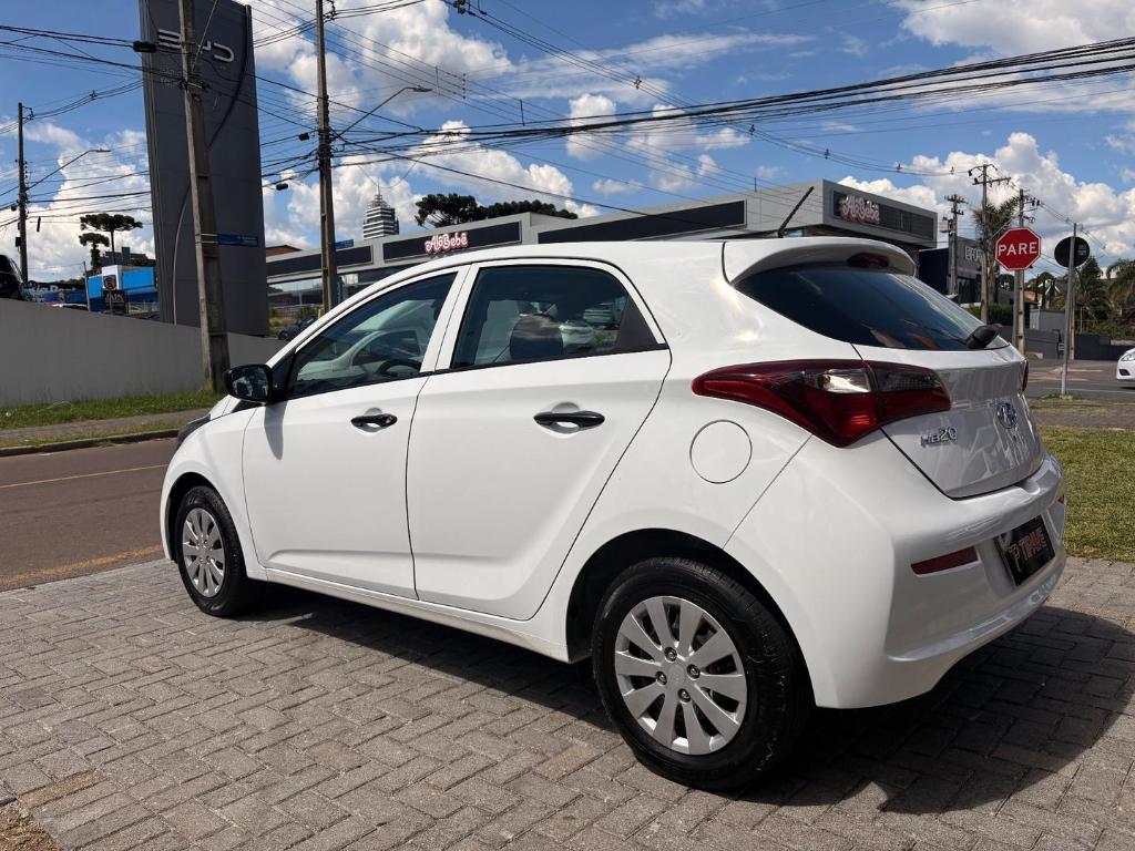 Hyundai HB20 1.0 Unique 2019 na cor branca, um hatch reconhecido pela robustez mecanica, economia e excelente custobeneficio. Mesmo com 127 mil km, apresenta otimo estado geral, demonstrando cuidado ao longo do uso e a confiabilidade ja conhecida da linha HB20.