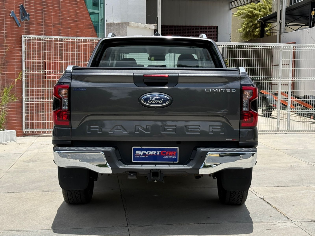 Ford Ranger Limited+ 2025, picape topo de linha equipada com motor turbodiesel potente, câmbio automático de 10 marchas, tração 4×4, direção elétrica, ar-condicionado digital dual zone, central multimídia com conectividade, bancos em couro com ajustes elétricos, sensores e câmeras de estacionamento, controle de estabilidade e diversos itens de segurança, oferecendo conforto, tecnologia e desempenho robusto para trabalho e aventuras.