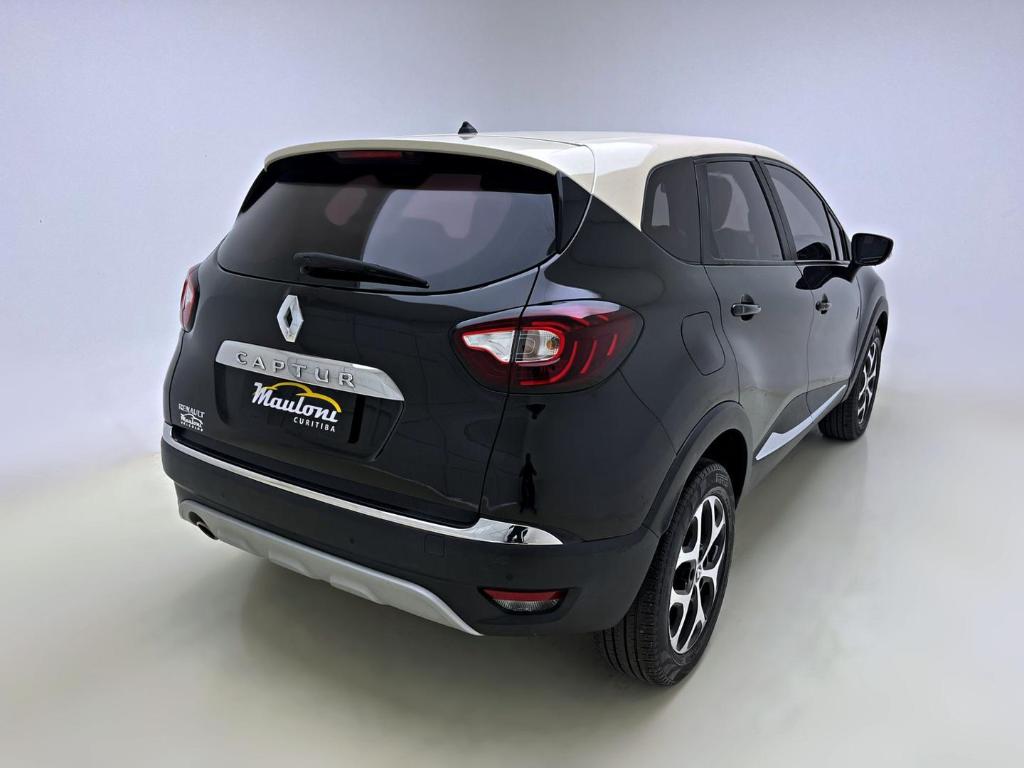 O Renault Captur Intense 1.6 16V Flex Automatico 2018 combina estilo e conforto com um pacote completo de equipamentos. Traz bancos em couro bicolor, central multimidia de 7” com GPS e Bluetooth, ar digital automatico, chave presencial com partida por botao e piloto automatico. Conta tambem com rodas aro 17, farois em LED, camera de re com sensor de estacionamento, alem de controle de estabilidade, tracao e assistente de partida em rampa. O visual e marcado pelo teto bicolor e detalhes cromados que reforcam sua elegancia e presenca.