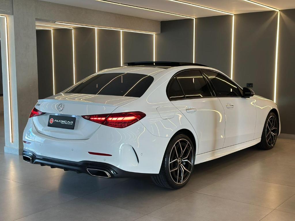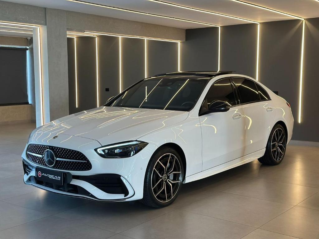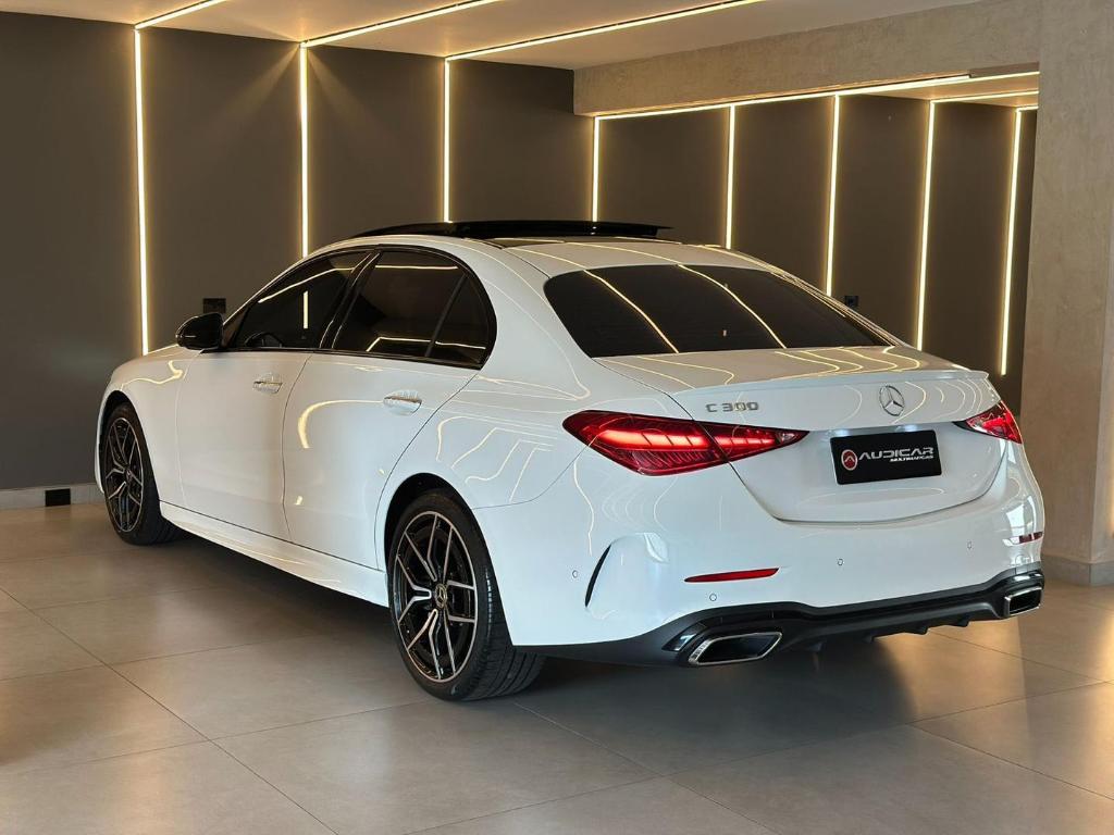 A MercedesBenz C300 AMG Line e um seda premium que combina luxo, desempenho e esportividade. Equipada com motor potente e resposta rapida, oferece conducao confortavel e dinamica. O pacote AMG Line acrescenta visual esportivo, com rodas exclusivas, detalhes aerodinamicos e interior sofisticado, unindo tecnologia avancada, seguranca e alto padrao de acabamento caracteristicos da marca.