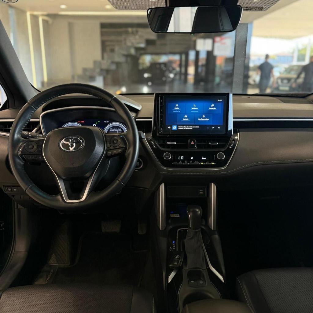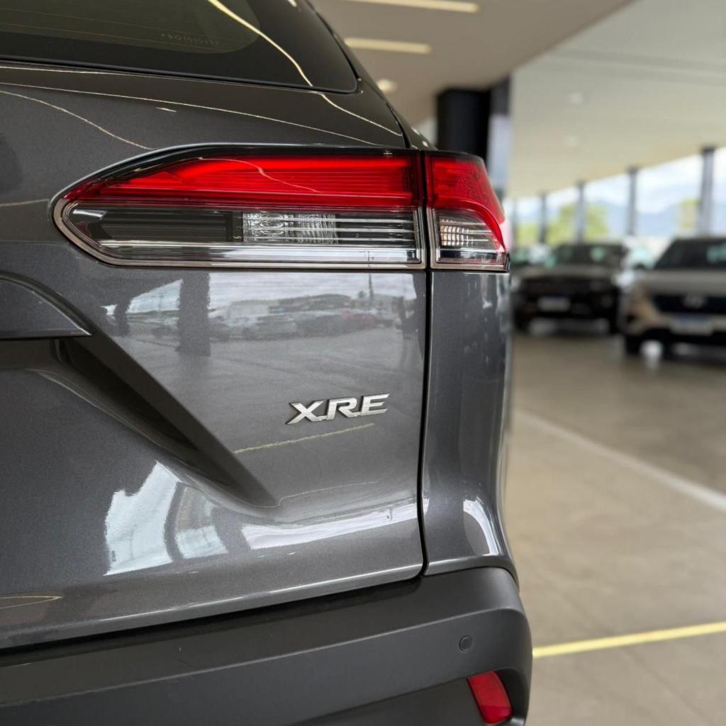 Toyota Corolla Cross XRE 2.0 Flex 2024/2025, com 26.474 km. Motor 2.0 de 175 cv, câmbio automático CVT com simulação de 10 marchas. Possui bancos em couro, multimídia de fábrica com Android Auto e Apple CarPlay, painel digital, freios ABS, direção elétrica, sensores de estacionamento dianteiro e traseiro, câmera de ré, rodas aro 18 em liga leve, ar-condicionado automático com duto traseiro e porta-malas de 440 litros. Excelente estado.