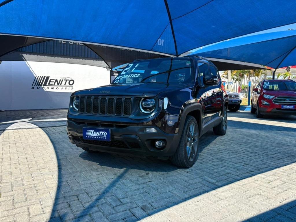 Jeep Renegade Limited automático 2021, SUV marrom com presença e conforto para cidade, estrada e viagens. Motor flex, direção elétrica, ar-condicionado digital, multimídia c/ CarPlay/Android Auto, câmera de ré, sensores dianteiros e traseiros, piloto automático, chave presencial e partida por botão, bancos em couro, retrovisores elétricos, faróis em LED, rodas de liga leve, controles de estabilidade e tração, assistente de rampa, Isofix, TPMS e alarme. Público: famílias e quem busca segurança e status. Pontos fortes: acabamento, dirigibilidade e conectividade. Oportunidade: leve este Renegade hoje. | Cor: Marrom