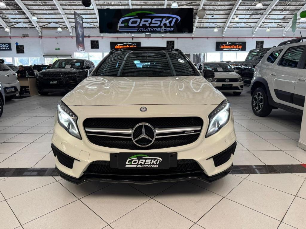 MERCEDESBENZ GLA45 TURBO, APENAS 62 MIL KM, TRACAO 4X4 INTEGRAL SOB DEMANDA, MOTOR COM 381CV DE POTENCIA, CAMBIO AUTOMATICO DE 7 MARCHAS, TETO SOLAR ELETRICO E PANORAMICO, BANCOS EM COURO ELETRICO COM MEMORIA E AQUECIMENTOS, CONTROLE DE TRACAO E ESTABILIDADE, CENTRAL MULTIMIDIA C BLUETOOTH, CAMERA DE RE, VOLANTE MULTIFUNCIONAL, PILOTO AUTOMATICO, PADDLE SHIFT, FAROIS EM LED E XENON, RODAS ARO 19 COM PNEUS OTIMOS, SEM DETALHES, TODA REVISADA E COM GARANTIA!