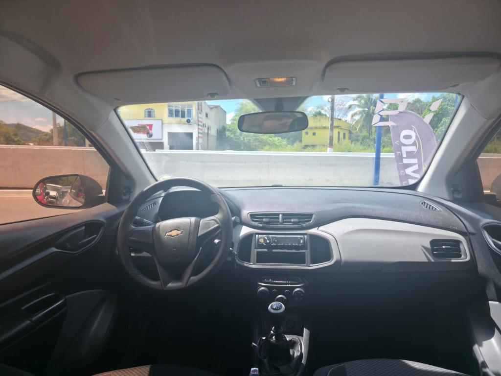 O Chevrolet Onix Joy 1.0 2019 é um hatch compacto focado em custo-benefício, com motor SPE/4 ECO de 999 cm³, entregando 80 cv com etanol e 78 cv com gasolina. Acelera de 0 a 100 km/h em 13,4 segundos e atinge 167 km/h. Equipado com câmbio manual de 6 marchas e direção elétrica, oferece consumo urbano de 9,1 km/l (etanol) e 12,9 km/l (gasolina), e rodoviário de 10,8 km/l (etanol) e 15,3 km/l (gasolina). Com 3.930 mm de comprimento, 1.705 mm de largura e 1.474 mm de altura, possui entre-eixos de 2
