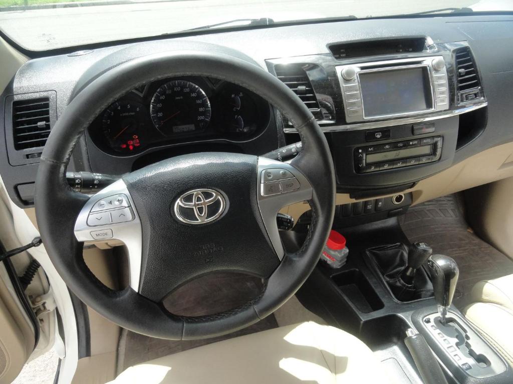 Hilux SW4 SRV 2014, motor 3.0 16v turbo diesel com 171cv, 4x4 com reduzida comando manual, cambio automatico de 5 marchas, bancos em couro com regulagem eletrica, 7 lugares, ar condicionado digital, direcao hidraulica, sensores e camera de re, volante multifuncional com regulagem de altura, midia com GPS e bluetooth, rodas de liga leve e pneus em otimo estado.