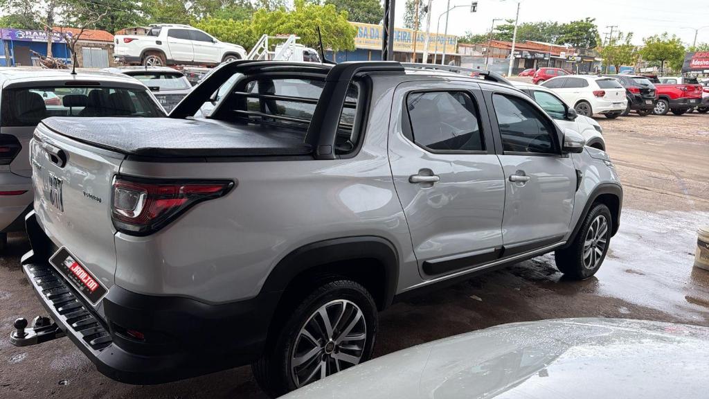 Na parte externa, o visual moderno se destaca com rodas de liga leve, farois de neblina, farois de rodagem diurna, alem de protetor de cacamba e capota maritima, garantindo praticidade e protecao no transporte de cargas.