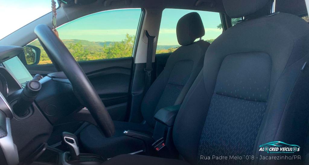 Por dentro, entrega conforto e conectividade com arcondicionado digital, direcao eletrica, central multimidia MyLink com Android Auto e Apple CarPlay, volante multifuncional, piloto automatico e camera de re.