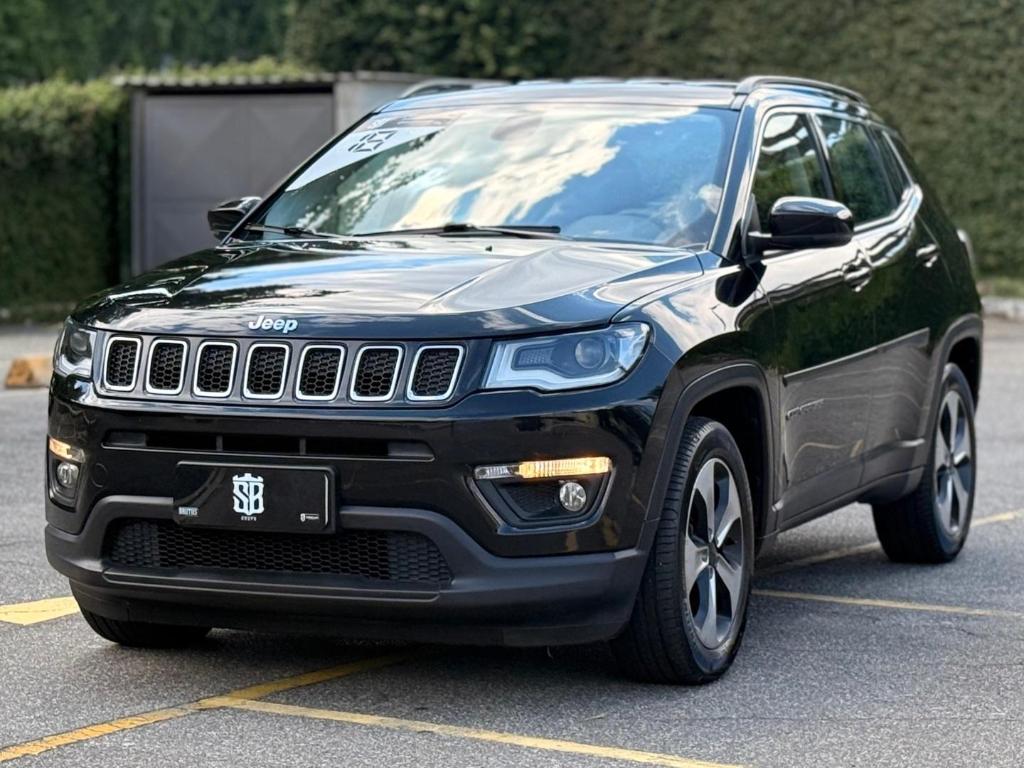 Jeep Compass Longitude, ano 2018, SUV que se destaca pelo conforto, robustez e excelente dirigibilidade. Ideal para quem busca um veículo versátil, tanto para uso urbano quanto para viagens, com posição de dirigir elevada e ótimo espaço interno.