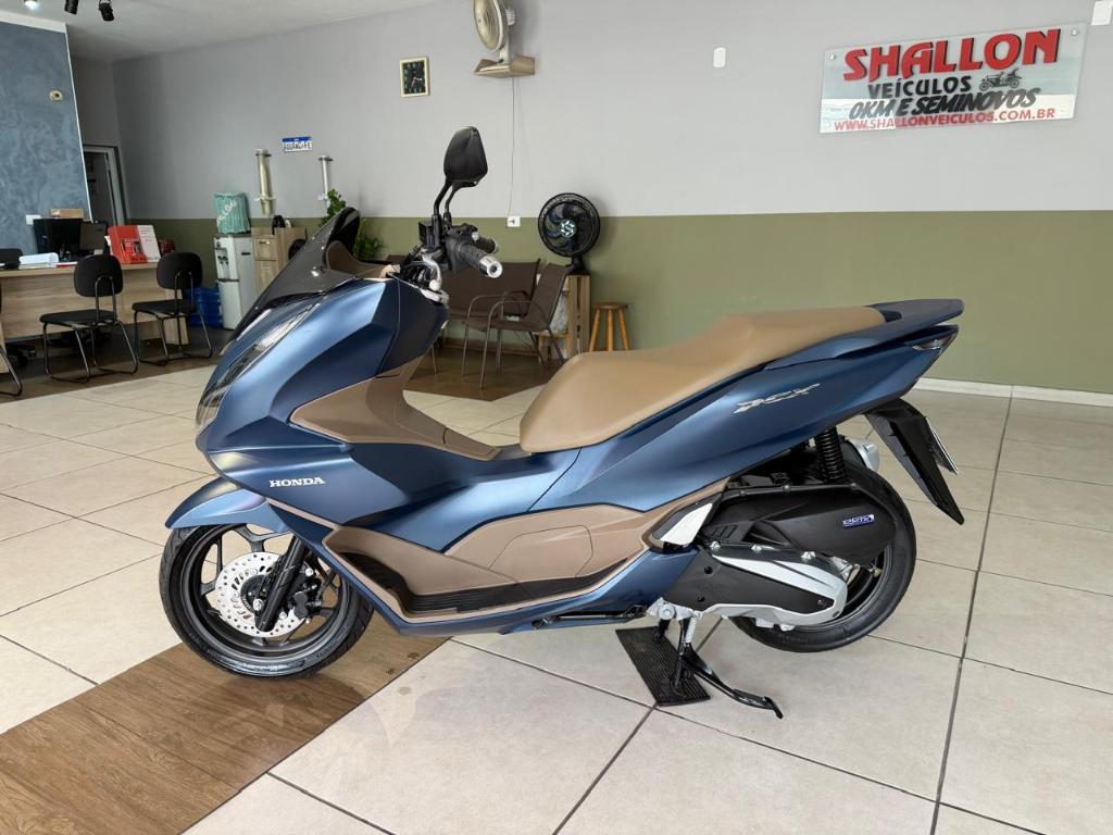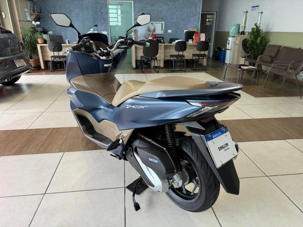 A Honda PCX 160 DLX 2024 é uma scooter premium com motor 156,9cc e injeção PGM-FI,4 tempos e arrefecimento líquido, entregando 16 cv de potência e câmbio automático CVT, destaca-se pelo freio ABS na roda dianteira, controle de tração (HSTC), painel digital, iluminação Full LED, chave presencial (Smart Key) e porta-objetos com entrada USB. É a versão topo de linha, destaca-se pelo design moderno (cor exclusiva na versão DLX), focada em conforto urbano, economia, praticidade e alto nível de acabamento.