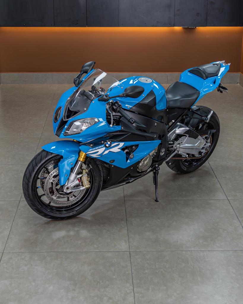 BMW S1000RR 2013 na cor azul, um ícone que ficou conhecida por entregar desempenho brutal, ciclística precisa e aquele feeling que só uma superesportiva tem.