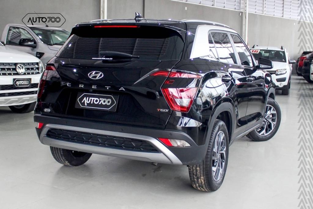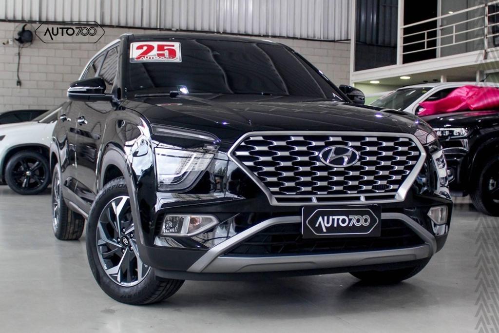 Creta Limited com Pacote Safety - Como diferencial, faróis altos adaptativos, detector de fadiga, alerta de colisão com frenagem automática de emergência para carros e pedestres, sistema de permanência e centralização do veículo na faixa, e quadro de instrumentos digital, com tela de 7 polegadas.