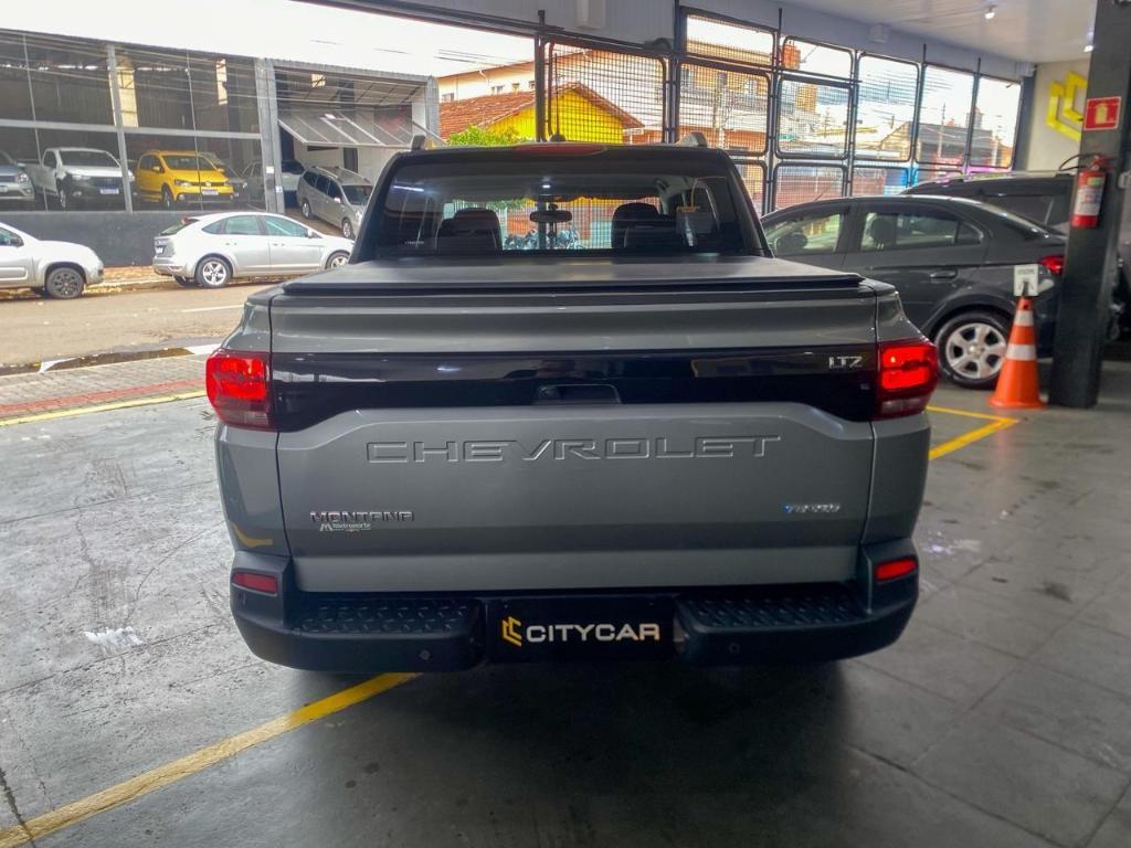 A Chevrolet Montana LTZ 2023 e uma picape intermediaria cabine dupla com motor 1.2 Turbo 133 cv, cambio automatico de 6 marchas, foco em uso urbano e conforto de SUV. Destacase pela cacamba com 874 litros Multiflex, seis airbags, rodas aro 17, multimidia MyLink e sensores de presenca.