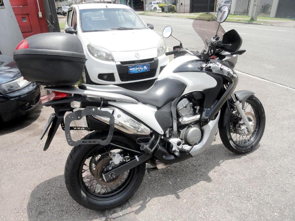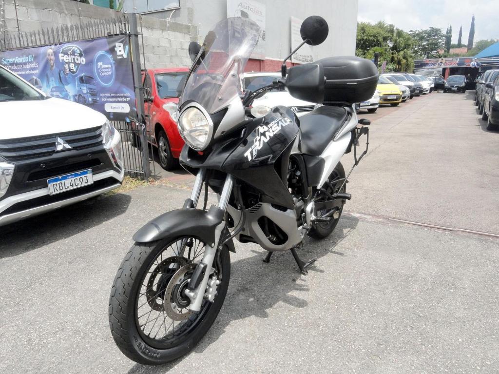 Honda XL 700V Transalp 2011, big trail versatil, conhecida pelo conforto em viagens longas. Motor OHC, 2 cilindros em V V2, refrigeracao liquida e injecao eletronica. Painel misto contagiros analogico e velocimetro digital, freios a disco com ABS e bauleto.
