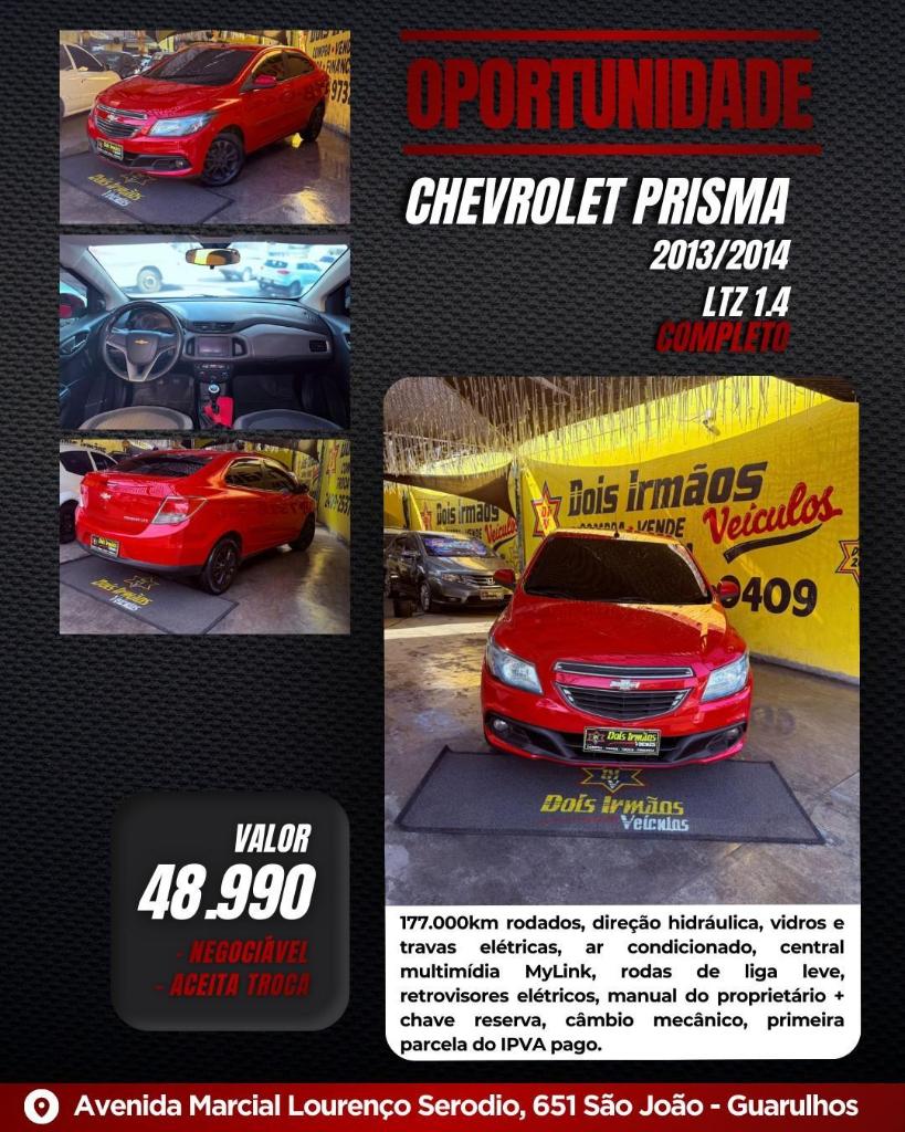 Se você busca um sedan compacto com visual moderno, ótimo espaço interno e excelente desempenho, o Chevrolet Prisma LTZ 1.4 2013/2014 é a escolha ideal para quem quer conforto, economia e estilo no dia a dia!