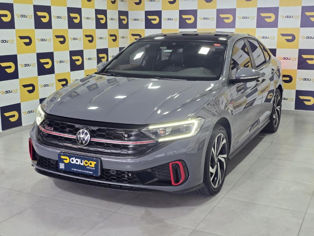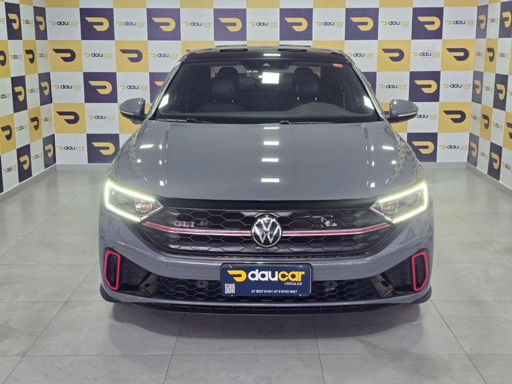 Volkswagen Jetta GLI 2023, sedan esportivo, motor 2.0 TSI turbo 231cv, câmbio automático DSG 7 marchas, tração dianteira, 0–100 km/h em 6,6s, suspensão independente multilink, rodas 18”, painel digital, central VW Play, som Beats, ACC, frenagem automática, alerta de ponto cego, faróis LED, bancos com aquecimento e ventilação, porta-malas 510L, 58.000 km, R$ 199.900.