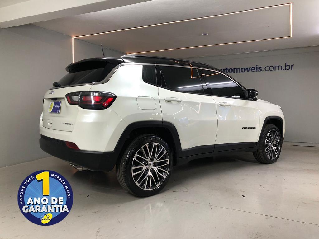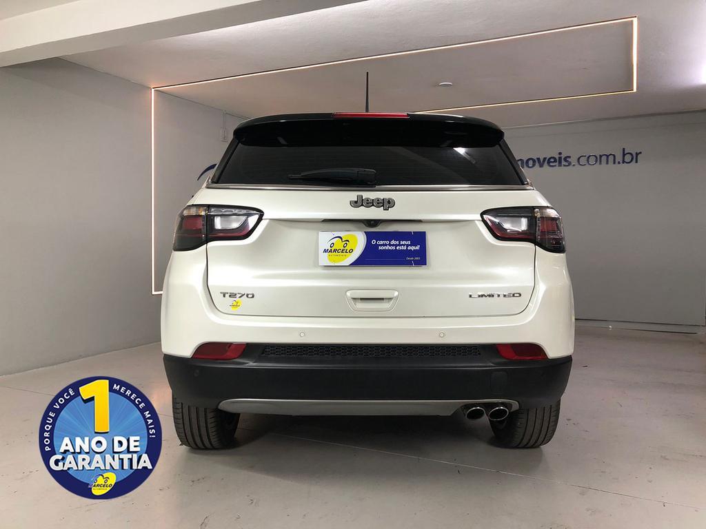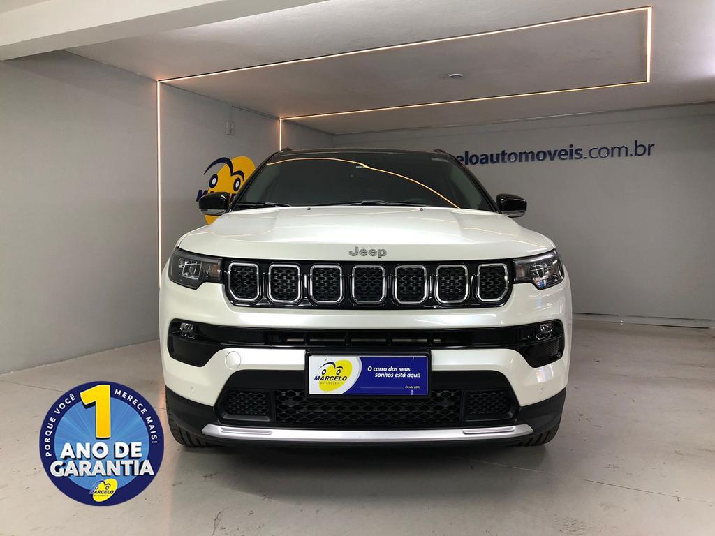 Jeep Compass Limited T270 1.3 Turbo (AUT), ano 2023, na cor branca. Carro completo e em excelente condição, equipado com banco do motorista com ajuste elétrico, kit multimídia com espelhamento da tela do celular, limpador de para-brisa automático, chave presencial, freio a disco nas quatro rodas e rodas de liga leve. Conta com garantia de 1 ano (consulte um de nossos vendedores para conhecer todas as condições), laudo cautelar aprovado e histórico livre de leilões ou sinistros.