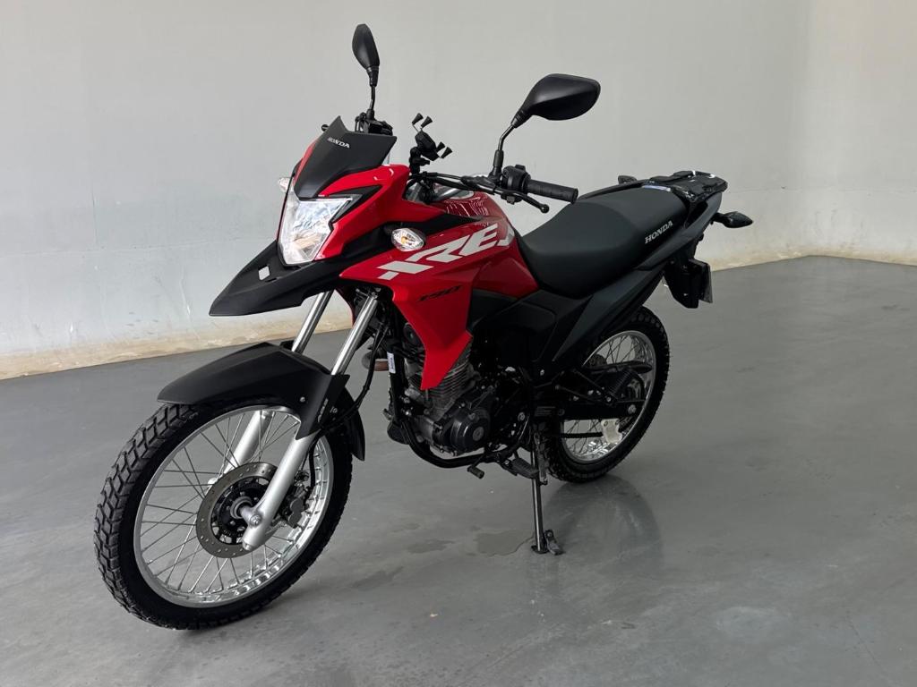 Moto moderna, economica e muito versatil. Honda XRE 190, ano 20232024, na cor vermelha, com motorizacao flex, cambio manual e excelente conforto para uso urbano, estrada e trechos de terra.