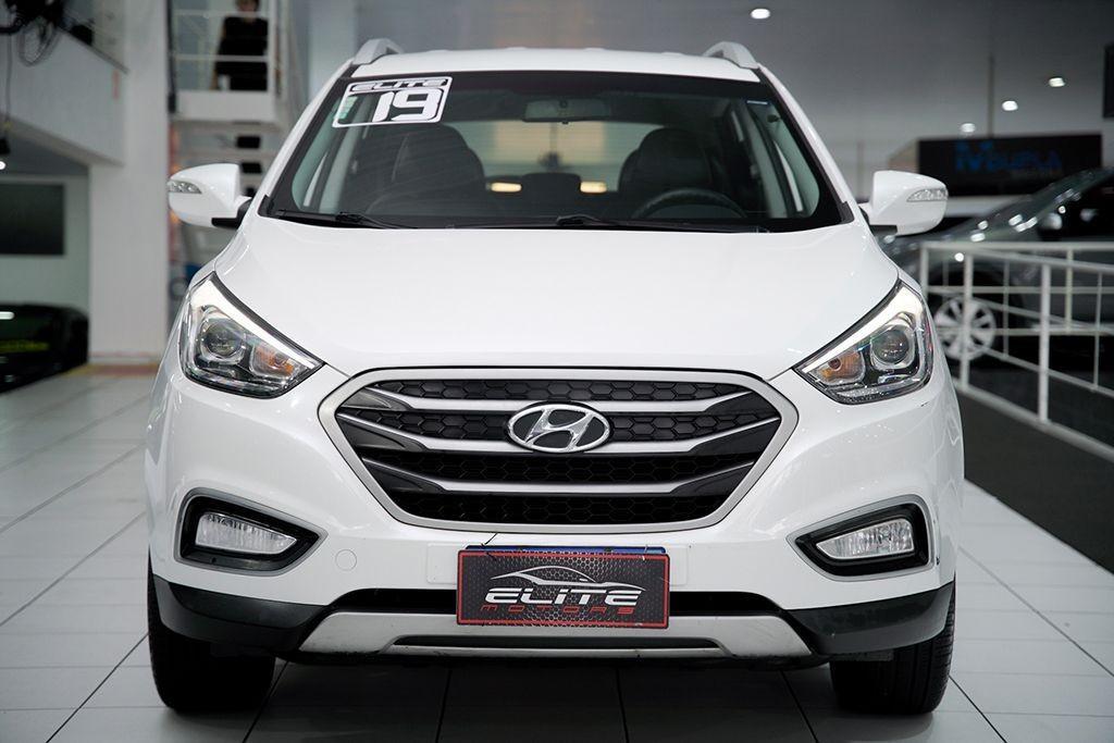 Hyundai ix35 GL 2.0 2019 na cor branco pérola, SUV que se destaca pela robustez, conforto e confiabilidade mecânica. Equipado com motor 2.0 e câmbio automático, oferece desempenho consistente aliado a uma condução suave. Conta com central multimídia com espelhamento para Android Auto e Apple CarPlay, direção elétrica, ar-condicionado, volante multifuncional, controle de estabilidade e tração, assistente de partida em rampa, airbags e freios ABS. Modelo com excelente espaço interno, posição de dirigir elevada e ótimo nível de conforto, ideal para quem busca um SUV completo, seguro e com excelente custo-benefício.