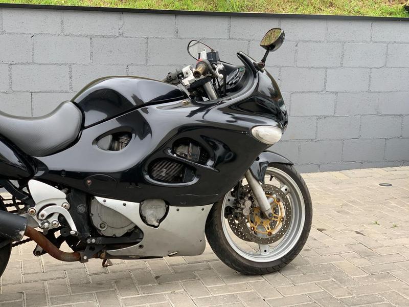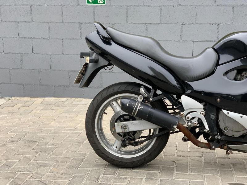 A Suzuki GSX750F 1999 e uma sporttouring classica, reconhecida por sua robustez e desempenho confiavel. Seu motor 4 cilindros em linha, DOHC, de 750 cc, entrega cerca de 92 cv, garantindo aceleracoes fortes e rodagem suave. A alimentacao por carburador Mikuni de 4 corpos assegura respostas lineares e manutencao simplificada. O cambio de 6 marchas tem relacoes bem escalonadas, aproveitando o torque em todas as faixas de giro. A carenagem integral melhora a aerodinamica e oferece protecao contra o vento em viagens longas. O quadro de aco reforcado proporciona rigidez e estabilidade, mesmo em altas velocidades. A suspensao dianteira telescopica e a traseira monoamortecida sao ajustaveis, equilibrando conforto e firmeza na pilotagem. O sistema de freios a disco duplo na frente e simples na traseira garante frenagens seguras e progressivas. O banco amplo e a posicao de pilotagem confortavel tornam a moto versatil para o dia a dia e estrada. E uma sporttouring duravel, com manutencao acessivel, ideal para quem valoriza performance com confiabilidade.