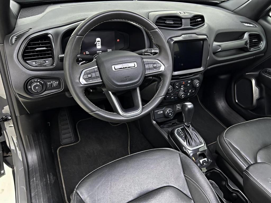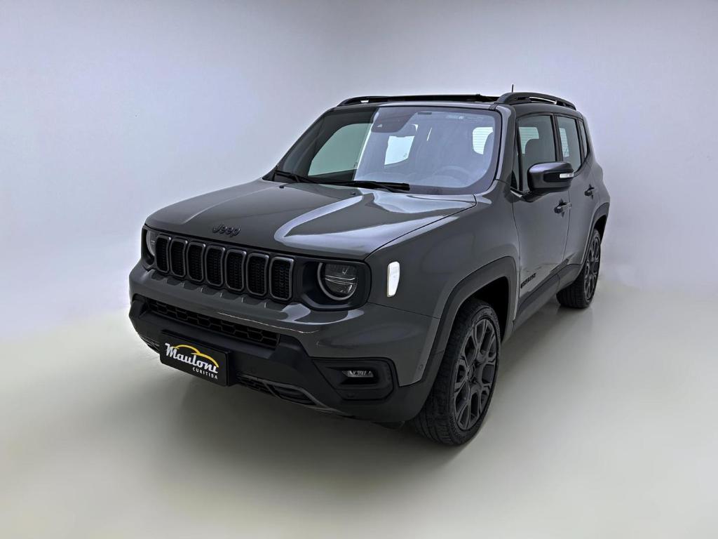 VERSAO DE TOPO DA RENEGADE, INCLUINDO OS DIFERENCIAIS: Motor T270 Turbo Flex, tracao 4x4 integral, cambio automatico de 9 marchas, seletor de terrenos SelecTerrain, rodas de liga leve aro 19, pintura externa bitom com teto preto, logotipos e acabamentos em grafite escurecido, 7 airbags, monitoramento de ponto cego, Park Assist estacionamento semiautonomo, comutacao automatica dos farois, painel digital de 7 polegadas, central multimidia de 8,4 polegadas e revestimento interno do teto em preto.
