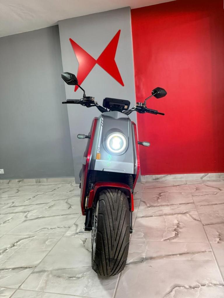 A bateria e de Ionlitio de 60v 30Ah, com autonomia estimada por bateria de ate 40km, e tempo de carga de 45 horas em media.