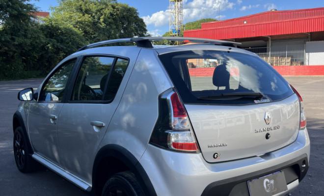 Renault Sandero Stepway 1.6 16V Hi-Flex 2012, veículo com procedência e revisões em dia. Versão completa, conta com direção hidráulica, ar-condicionado, vidros, travas e retrovisores elétricos, computador de bordo, volante multifuncional e escamoteável, conexão USB e Bluetooth, ar quente e frio, desembaçador e limpador traseiro, banco do motorista com regulagem de altura, faroletes, rack de teto e rodas de liga leve aro 16. Com 144 mil km e manual do proprietário. Estuda troca. Valor: R$ 41.900,00.
