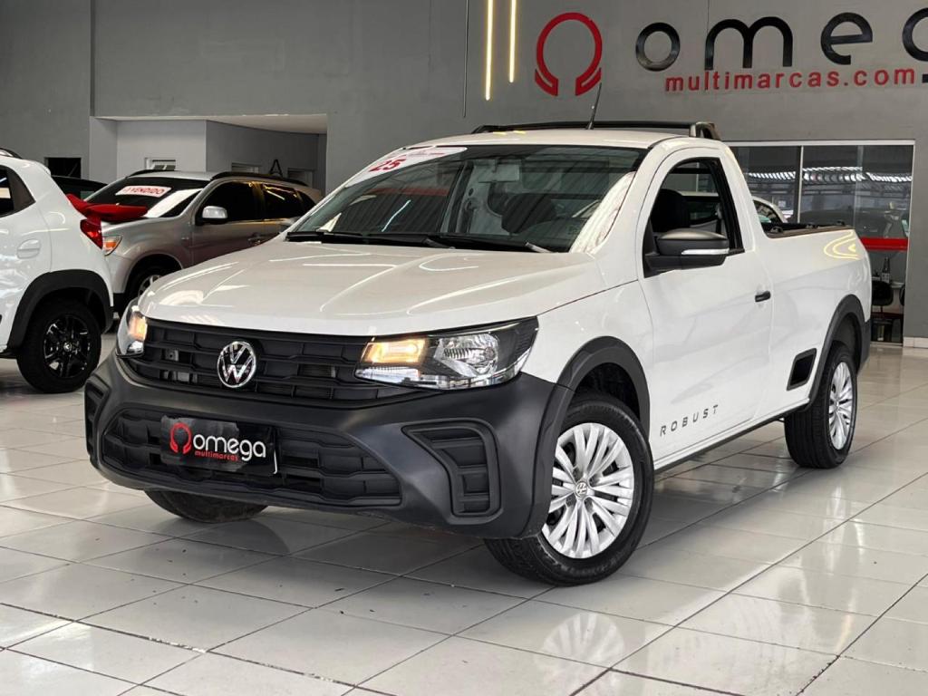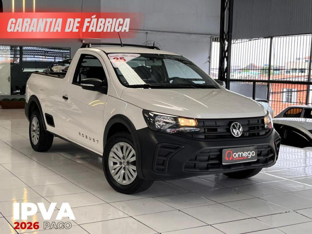 Volkswagen Saveiro Robust 2025 picape compacta 1.6 Flex com cambio manual ideal para trabalho e tarefas diarias. Robusta pratica e com otimo espaco de cacamba. Garantia de fabrica.