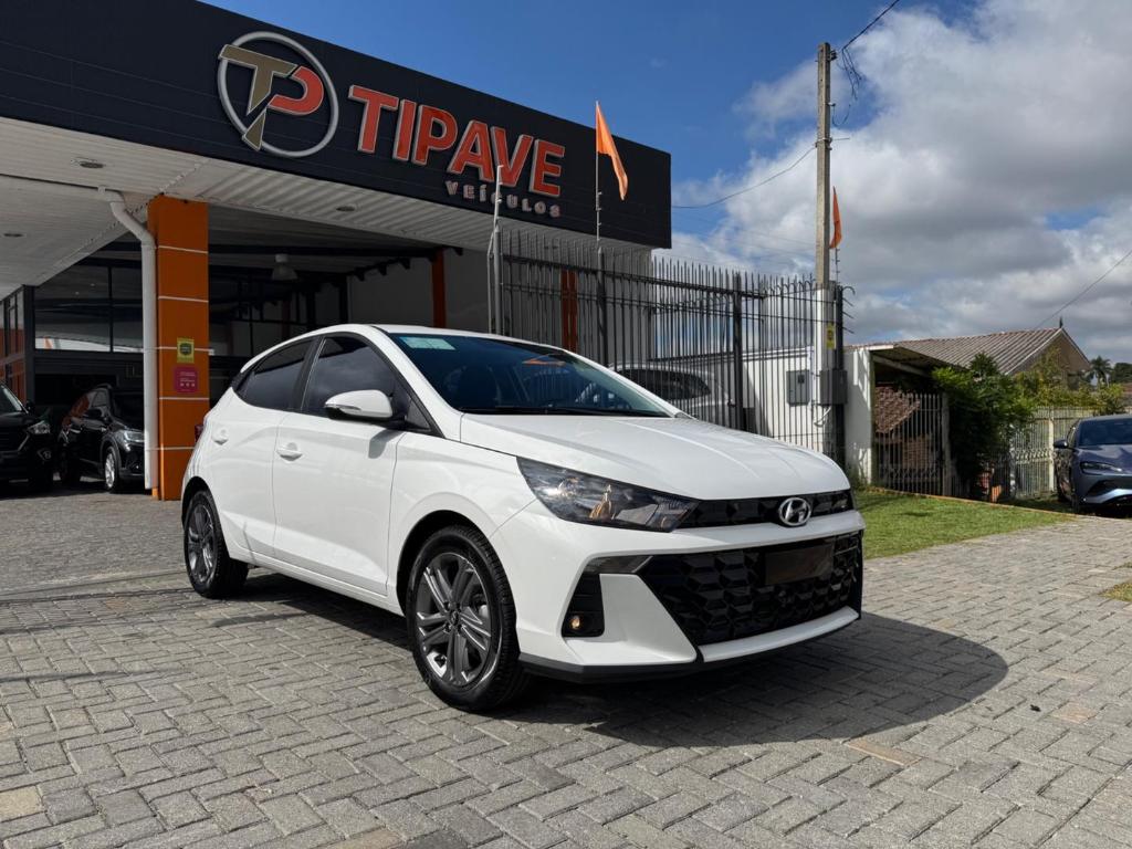 Hyundai HB20 1.0 Turbo Automatico Comfort 2025 na cor branca, com apenas 30 km rodados, um hatch zero km emplacado, em estado realmente impecavel e sem qualquer detalhe.