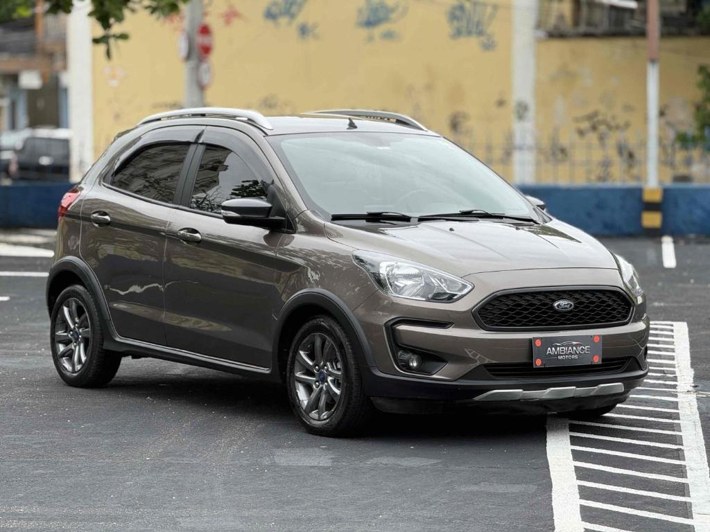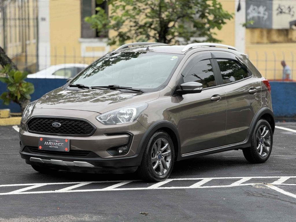 O Ford Ka Freestyle 1.5 Ti-VCT Flex Automático (pós-facelift, 2018-2021) é um hatch aventureiro com motor 1.5 de 3 cilindros (136cv/Etanol, 128cv/Gasolina), câmbio automático de 6 marchas, direção elétrica, suspensão elevada, controle de tração/estabilidade, 6 airbags, Central Multimídia SYNC 3 com Apple CarPlay/Android Auto, e itens como sensor de estacionamento, câmera de ré e piloto automático, ideal para quem busca um carro compacto com bom desempenho e estilo.