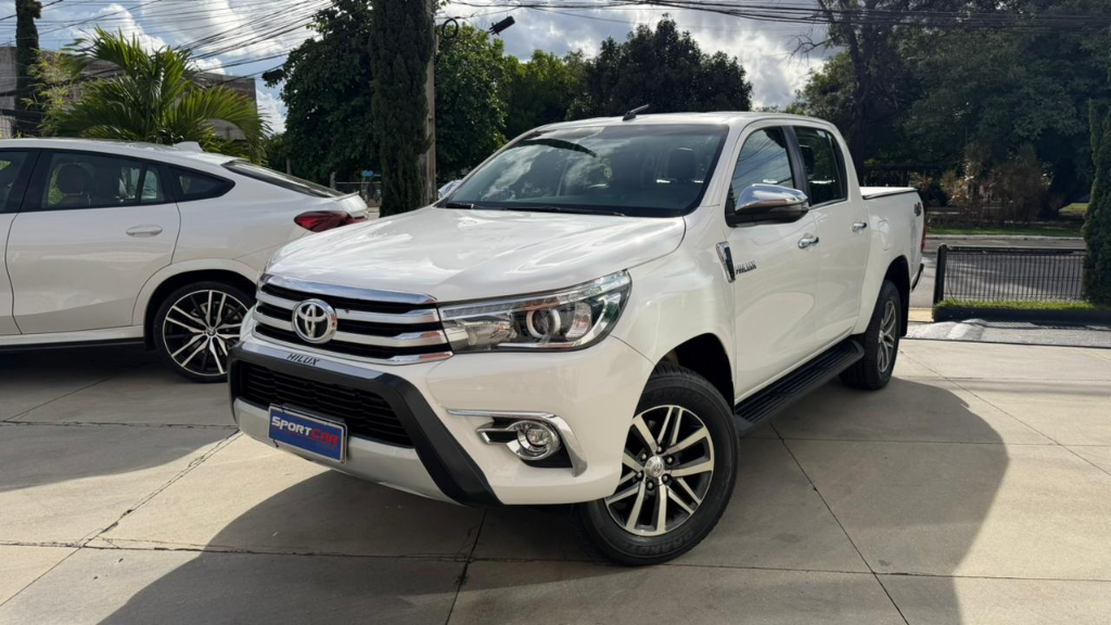 Toyota Hilux SRX CD 2018, picape robusta e confiável equipada com motor 2.8 turbodiesel, câmbio automático, tração 4×4, ar-condicionado digital, central multimídia com conectividade, bancos confortáveis, vidros e travas elétricos, rodas de liga leve e diversos itens de segurança, ideal para quem busca potência, versatilidade e conforto tanto no uso urbano quanto em aventuras fora de estrada.