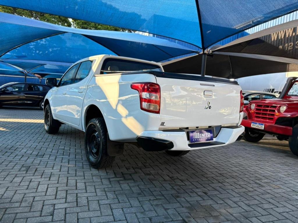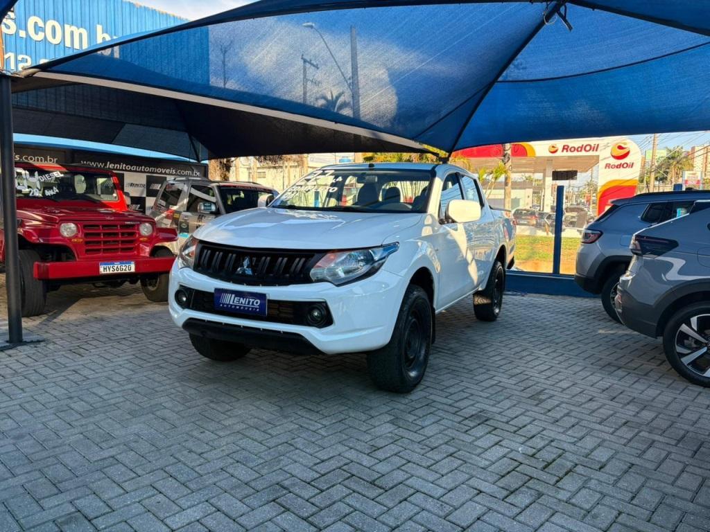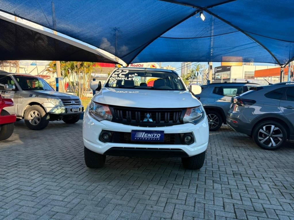 Mitsubishi Triton diesel manual 2022, picape branca robusta para cidade, obra e estrada. Tração integral com reduzida, direção assistida, ar-condicionado, vidros/travas/retrovisores elétricos, multimídia c/ Bluetooth e USB, volante multifuncional, piloto automático, câmera de ré e sensores, faróis de neblina, controle de estabilidade e tração, assistente de rampa, bloqueio de diferencial, protetor e capota de caçamba. Público: trabalho e aventura. Pontos fortes: força, durabilidade, conforto. Oportunidade: leve esta Triton hoje. | Cor: Branco