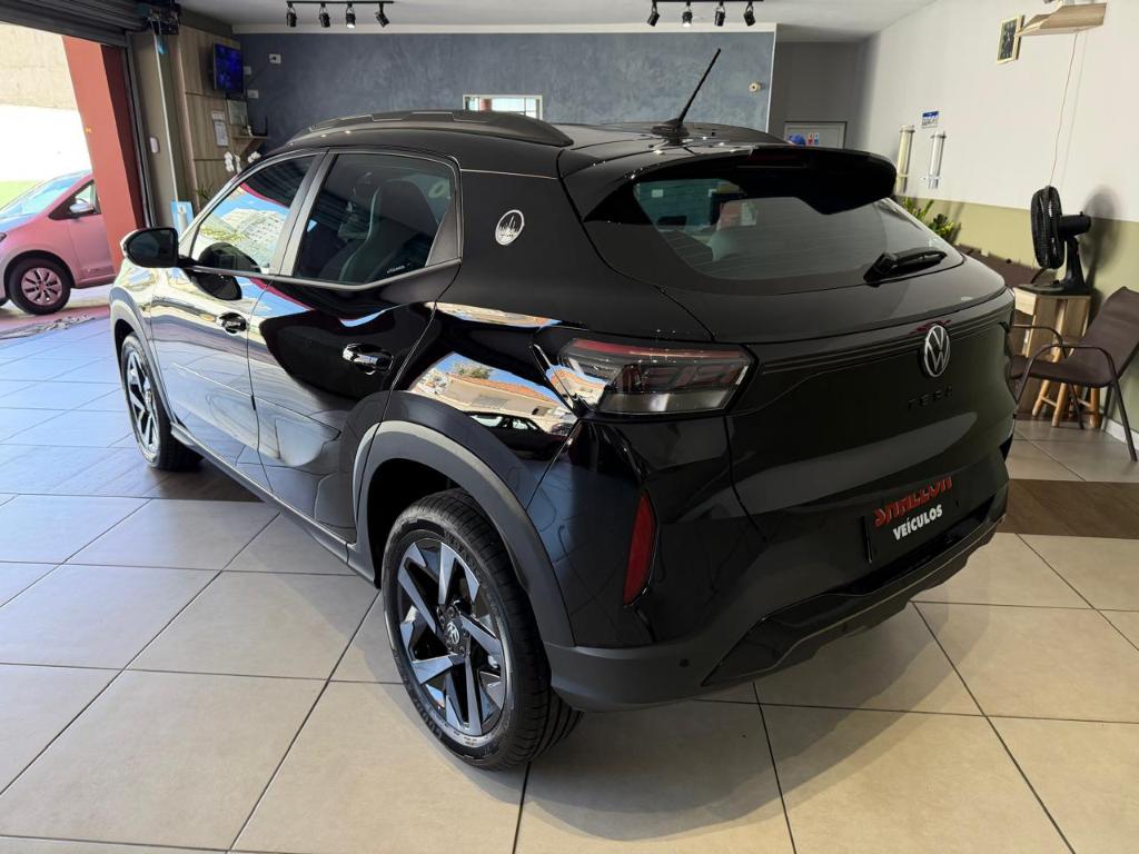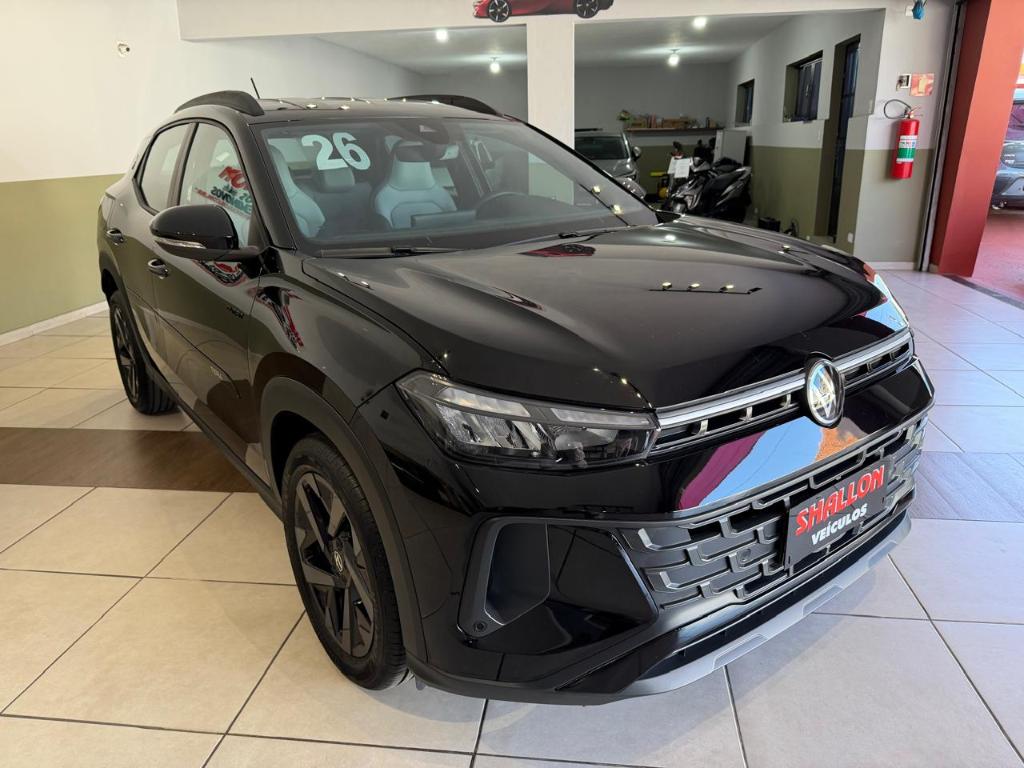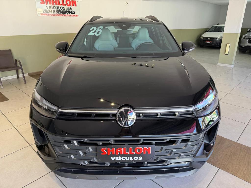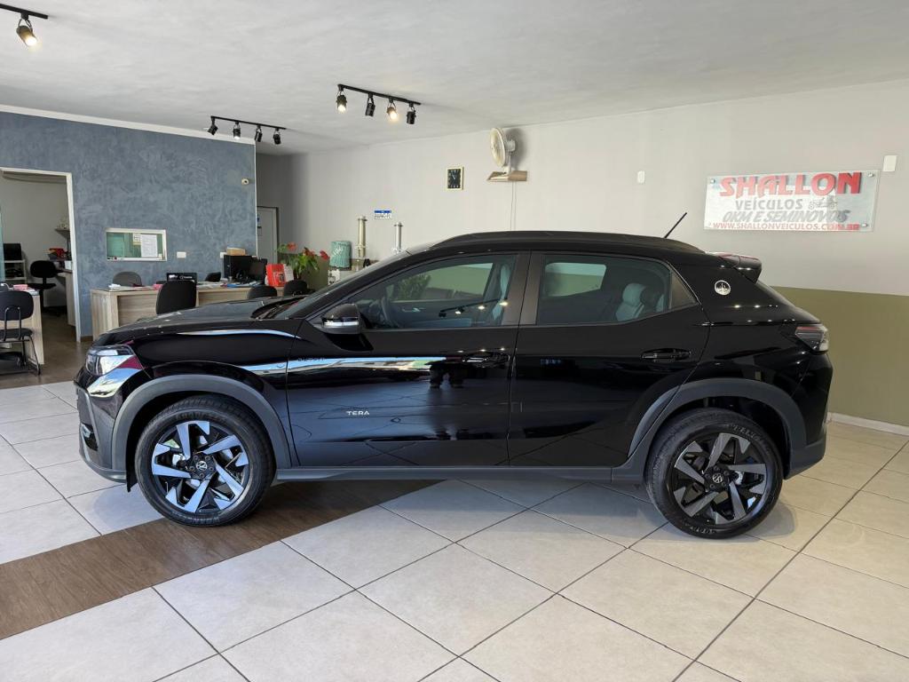 O Volkswagen Tera High 2026 é a versão topo de gama do SUV compacto, equipada com motor 1.0 TSI de 116 cv e câmbio automático de seis marchas, além de um pacote completo de itens de série, como piloto automático adaptativo, frenagem de emergência, central multimídia com tela de 10,1 polegadas, painel digital de 10,25 polegadas, rodas de liga leve aro 17 e bancos revestidos em couro. Pacote ADAS: Assistente ativo de mudanca de faixa (Lane Assist), camera multifuncional e detector de ponto cego com assistente de saida de vaga. Pacote Outfit The Town Edition Black: Bancos em revestimento premium com inserto Outfit, espelhos retrovisores externos pintados na cor preto Ninj e rodas de liga leve 17" escurecidas.