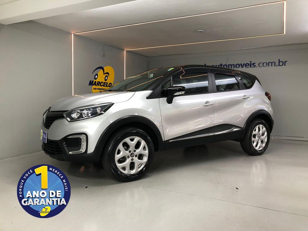 Renault Captur Life 1.6 automático, ano 2019, na cor prata. SUV completo e muito conservado, com chave cartão, rodas de liga leve e kit multimídia, oferecendo conforto, posição de dirigir elevada e mecânica confiável para o dia a dia. Conta com garantia de 1 ano (consulte um de nossos vendedores para conhecer todas as condições), laudo cautelar aprovado e histórico livre de leilões ou sinistros.