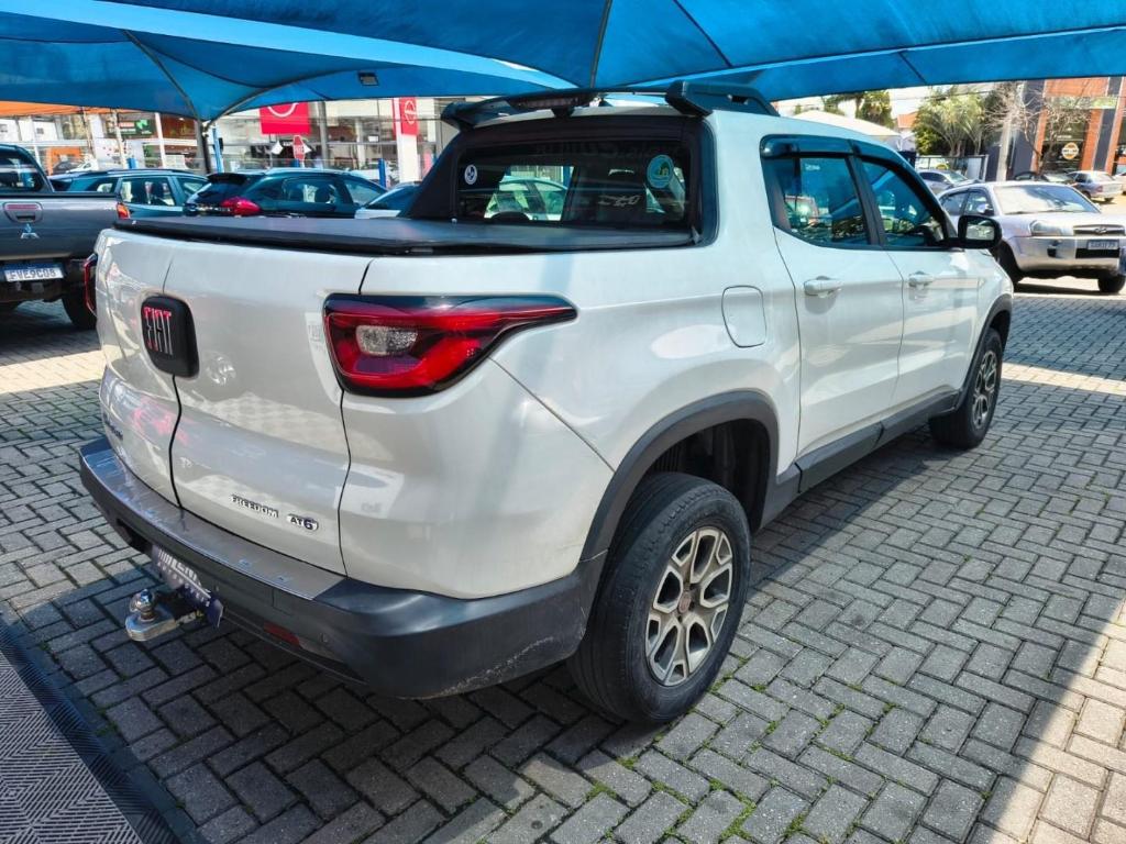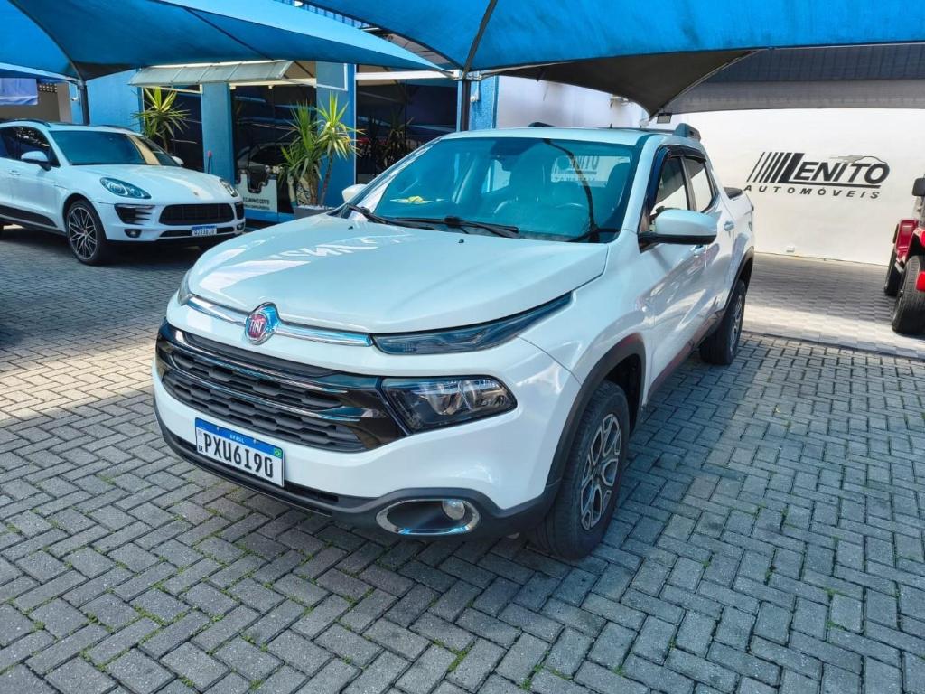 Fiat Toro Freedom AT6, picape branca 2017, versátil para cidade, estrada e trabalho leve. Direção elétrica, ar-condicionado, multimídia com Bluetooth/USB e CarPlay/Android Auto, volante multifuncional, piloto automático, vidros/travas/retrovisores elétricos, faróis de neblina, rodas de liga leve, rack de teto, protetor de caçamba e tampa traseira bipartida. Controle de estabilidade e tração, assistente de rampa, Isofix, airbags e ABS. Público ideal: famílias ativas e empreendedores. Oportunidade de compra: garanta esta Toro hoje.