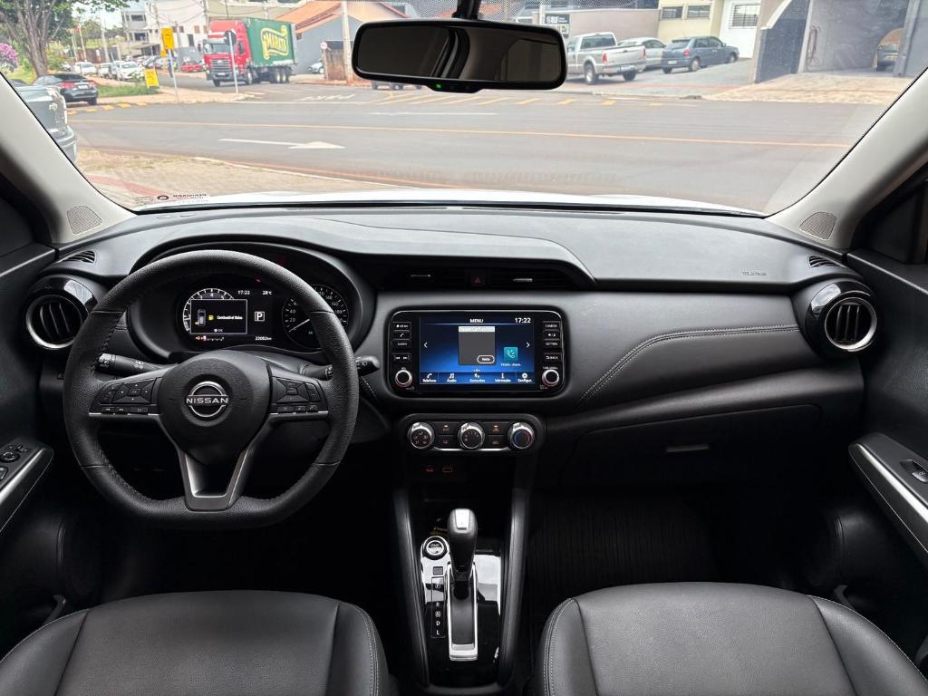 O Nissan Kicks Advance 2024 mantem o motor 1.6L Flex de 113 cv Etanol 110 cv Gasolina e cambio CVT de 6 marchas, focado em economia e confiabilidade, com destaques para itens como camera de re, sensor de estacionamento traseiro, partida em rampa, rodas de liga leve aro 17, 6 airbags, central multimidia, chave presencial e arcondicionado. A versao Advance oferece um bom pacote de tecnologia e conforto, com bom espaco interno e acabamento em couro, mantendo o foco no custobeneficio com bom consumo de combustivel.