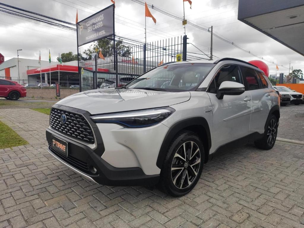 Toyota Corolla Cross XRX Hybrid 2022 na cor prata, um SUV hibrido que une tecnologia, economia e a reconhecida confiabilidade Toyota.