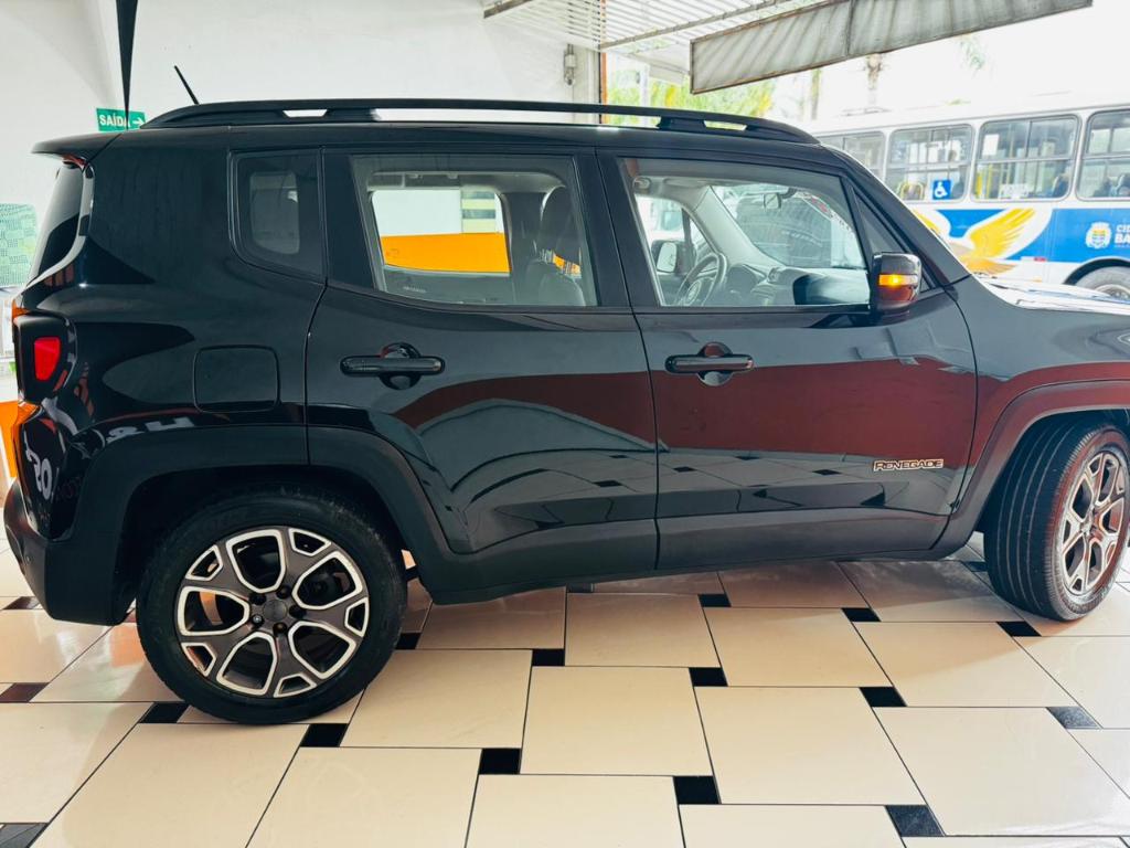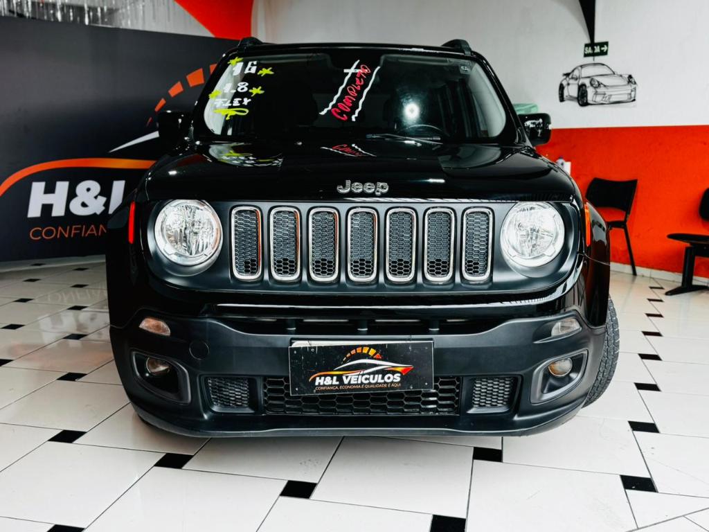 Jeep Renegade 2016, usado com 108000 km. Este SUV, na elegante cor preta, é equipado com um motor 1.8 Flex que oferece uma potência de 130 hp, aliado a uma transmissão automática de 6 velocidades, proporcionando uma condução suave e eficiente. Com cinco portas e capacidade para cinco pessoas, é ideal para famílias ou para quem busca um veículo versátil para o dia a dia.