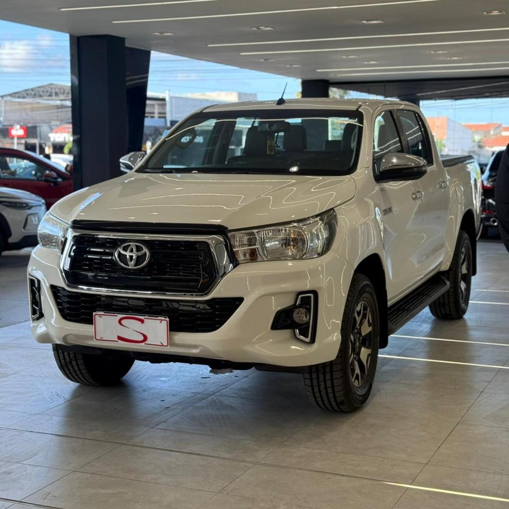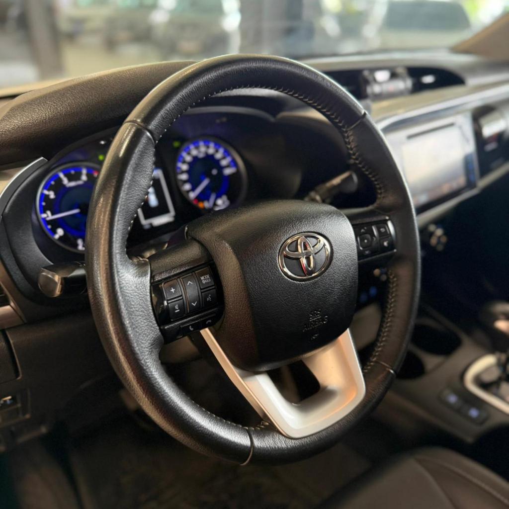 Toyota Hilux CD SRV 4x4 2018/2019, diesel, robusta e extremamente confiável, com 105.884 km. Equipada com motor 2.8 Turbo Diesel de 177 cv e câmbio automático de 6 marchas, entrega força, resistência e ótimo desempenho tanto no asfalto quanto fora de estrada. Versão SRV com tração 4x4, ar-condicionado digital automático com saídas traseiras, bancos em couro, multimídia de fábrica, câmera de ré, volante multifuncional em couro com ajuste de altura e profundidade, computador de bordo.