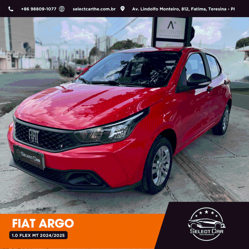A procura de um Fiat ARGO 1.0 6V Flex - Vermelho - 2025 seminovo? Aqui tem. 3 Meses de garantia. Ano: 2024/2025 KM: 28315 km. Gostou deste carro? Temos uma equipe de atendimento on-line pronta para te atender. Tire todas suas dúvidas de forma rápida e descomplicada, através do nosso WhatsApp (86)98809-1077, ou se preferir, faça uma visita. Nosso endereço é Av. Lindolfo Monteiro, nº 812, Loja de Veículos, Bairro de Fátima, Teresina - Piauí. Te esperamos!