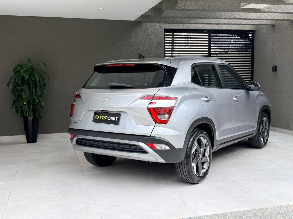 Equipado com motor 2.0 Flex de 167 cv e câmbio automático de 6 marchas, o Creta Ultimate entrega desempenho forte, condução suave e excelente estabilidade. A versão Ultimate traz um pacote premium de equipamentos, incluindo bancos em couro bi-color, painel digital, teto solar panorâmico, central multimídia com Android Auto e Apple CarPlay, câmera 360°, sensores de estacionamento, piloto automático adaptativo (ACC), alerta de colisão, assistente de permanência em faixa, ar-condicionado digital dual zone, rodas de liga leve aro 18 e um completo pacote de segurança ativa.