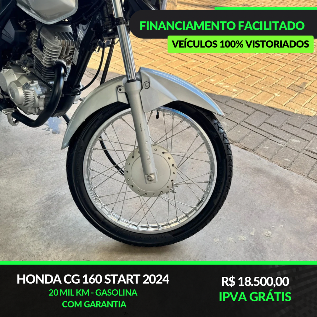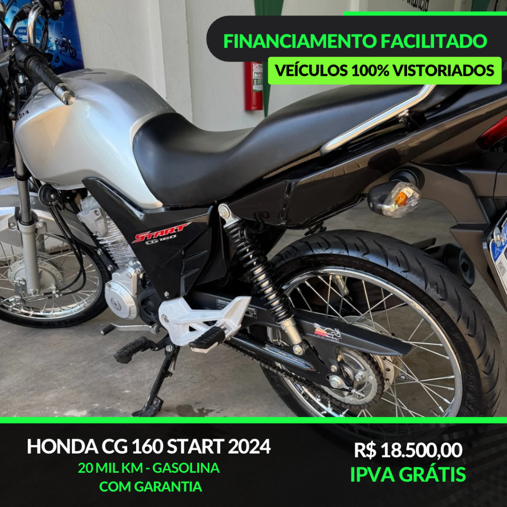 A Honda CG 160 Start é a escolha certa para quem busca uma moto simples, resistente e econômica. Perfeita para o dia a dia, trabalho ou deslocamentos urbanos, entregando praticidade e confiança em cada trajeto.