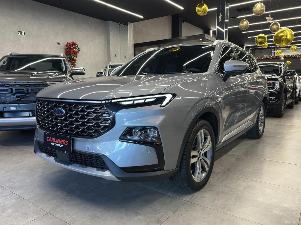 Motor 1.5 Turbo EcoBoost com 169 cv de potencia e 25,5 kgfm de torque, cambio automatico DCT de 7 marchas e tracao dianteira. Principais acessorios incluem teto solar panoramico, central multimidia 12,3″, camera 360, piloto automatico adaptativo, sensores de estacionamento, frenagem automatica, alerta de ponto cego e bancos em couro com ajustes eletricos.
