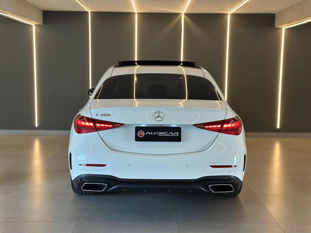 A MercedesBenz C300 AMG Line e um seda premium que combina luxo, desempenho e esportividade. Equipada com motor potente e resposta rapida, oferece conducao confortavel e dinamica. O pacote AMG Line acrescenta visual esportivo, com rodas exclusivas, detalhes aerodinamicos e interior sofisticado, unindo tecnologia avancada, seguranca e alto padrao de acabamento caracteristicos da marca.