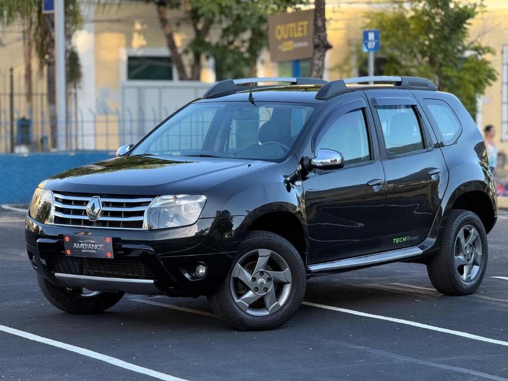 O Renault Duster 2013 1.6 Dynamique Tech Road é um SUV robusto com motor 1.6 16V Hi-Flex (115cv E / 110cv G), câmbio manual de 5 marchas, direção hidráulica, tração dianteira, suspensão elevada, e pacote Tech Road que adiciona itens como faróis de milha, rodas de liga leve, bancos em couro, ar-condicionado, vidros elétricos, sensor de estacionamento traseiro e central multimídia (com CD/USB). Oferece bom porta-malas (475L), boa altura do solo (210mm) e desempenho adequado para a categoria.