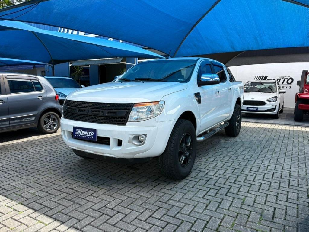 Ford Ranger XLT, picape branca ano 2014, robusta e confortável para trabalho, cidade e estrada. Câmbio manual, direção hidráulica, ar-condicionado, central multimídia com Bluetooth e entrada USB, comandos no volante, computador de bordo, vidros, travas e retrovisores elétricos, faróis de neblina, rodas de liga leve, protetor de caçamba, sensor traseiro, airbags e freios ABS com EBD. Ideal para produtores, empreendedores e famílias aventureiras. Oportunidade de compra: garanta esta Ranger hoje.
