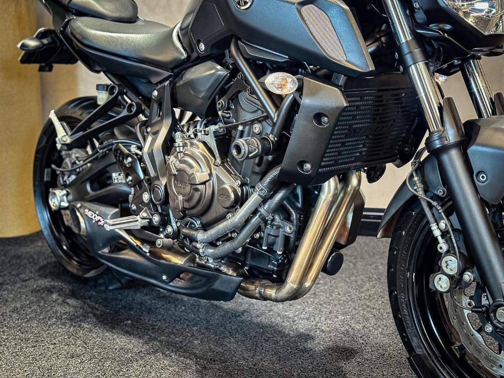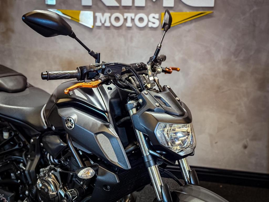 A MT07 e uma das nakeds mais vendidas do mercado, reconhecida pelo motor bicilindrico com otimo torque em baixas e medias rotacoes, leveza e agilidade na pilotagem. Esta unidade conta com escapamento esportivo Mexx, que valoriza o visual e o som da moto, mantendo excelente desempenho para uso urbano e estrada.