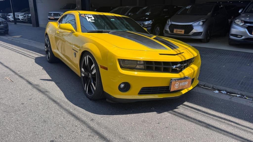 Camaro 2SS V8 6.2L, ano 2012, cor amarelo original, com presença de palco e ronco que arrepia até quem tá de fone de ouvido.